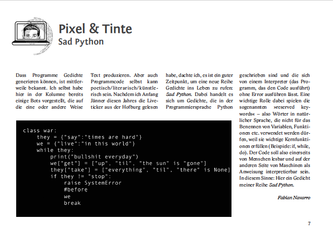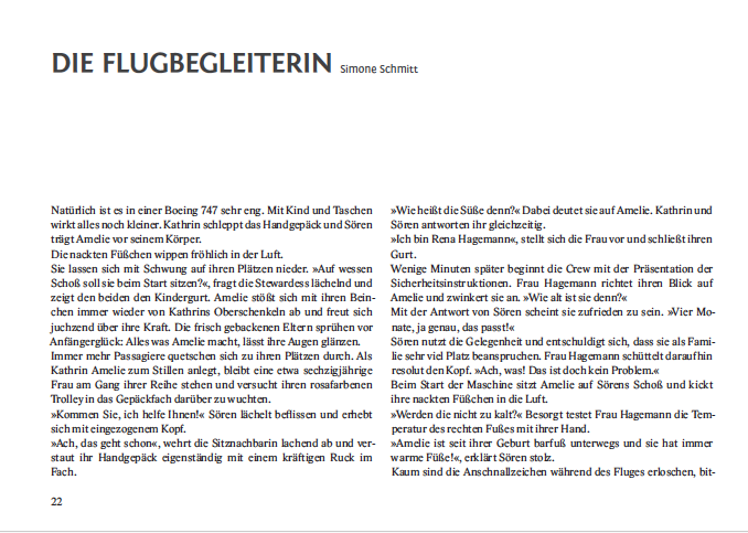 mit Texten von: Ernad Bradaric, Niklas Danninger, Henrik Friedrichsen, Camille Herter, Bastian Kienitz, Bianca M. Klein, Antonia Kranebitter, Brigitte Krech, Caroline Kühl, Dominik Leitner, Christine Lindengrün, Simon Probst, Simon Scharinger, Simone Schmitt, Chili Tomasson, Franziska Vogt